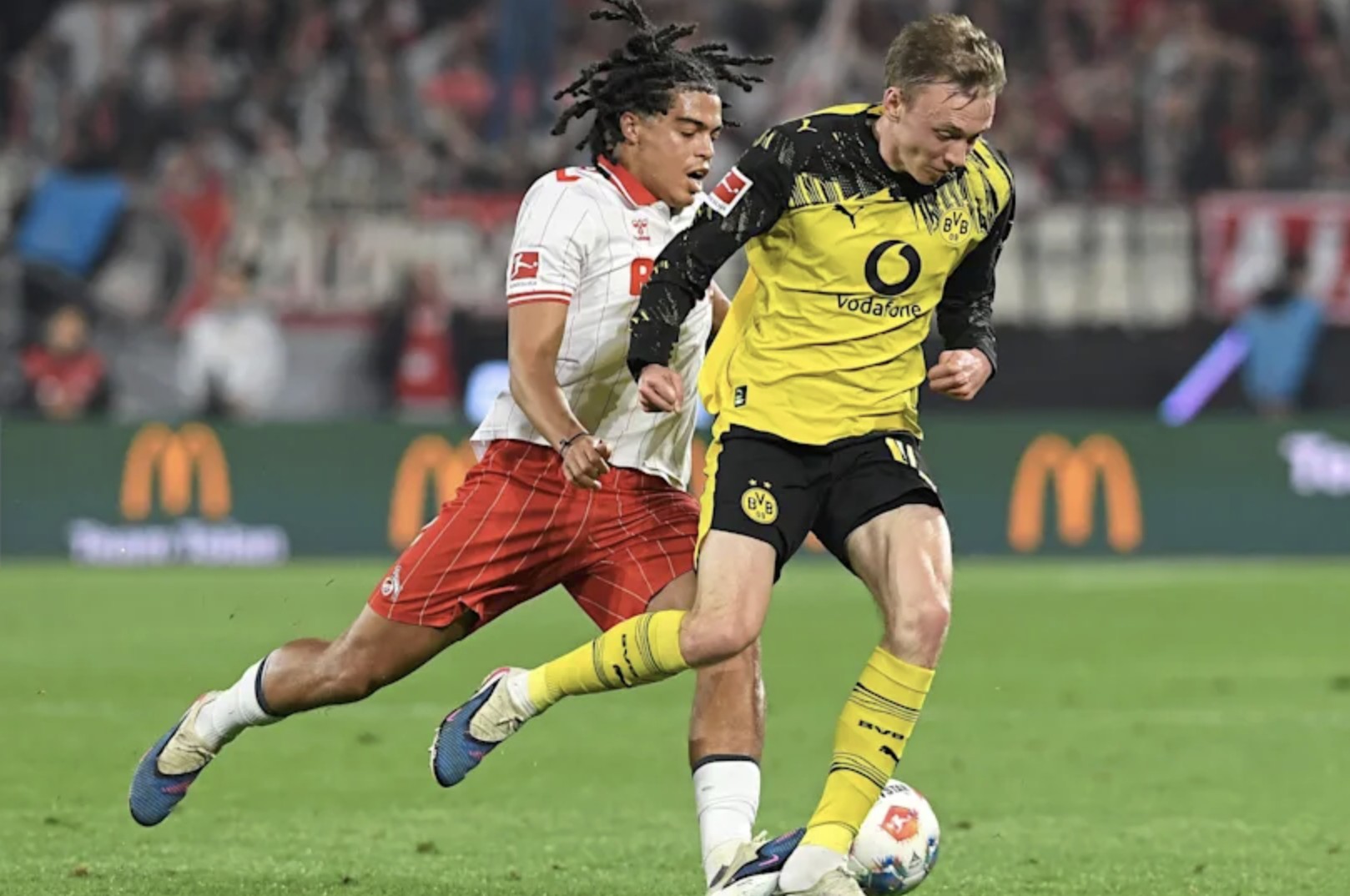 北京时间3月8日,德甲第25轮,科隆1-2多特蒙德。本场比赛中的红牌判罚引起了争议。第43分钟,科隆球员辛普森-普西从后方踢中了拜尔的跟腱。裁判DanielSiebert当时先出示黄牌警告,但在观看视频回放(VAR)后,将黄牌改为直接红牌,将辛普森-普西罚下。这一判罚引起了科隆体育场内的强烈反应。长期担任科隆球场播报员的MichaelTrippe(自1999年起任职)愤怒大喊:“真恶心!太可恶了!